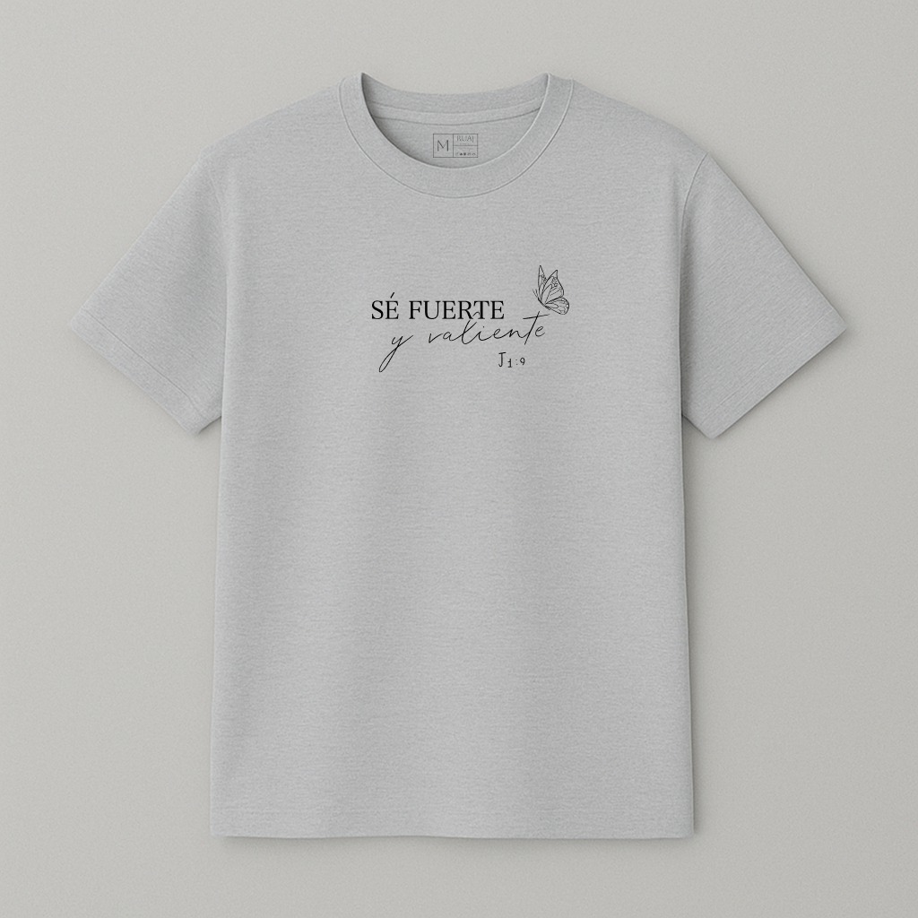 Camiseta premium 200 g en algodón peruano con el estampado “Se fuerte y valiente”. Suave al tacto, respirable y duradera. Ideal para uso diario.